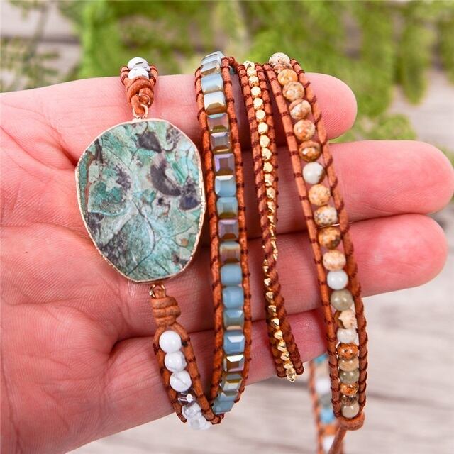 ※送料無料※ ターコイズジャスパーストーンブレスレット ハンドメイド